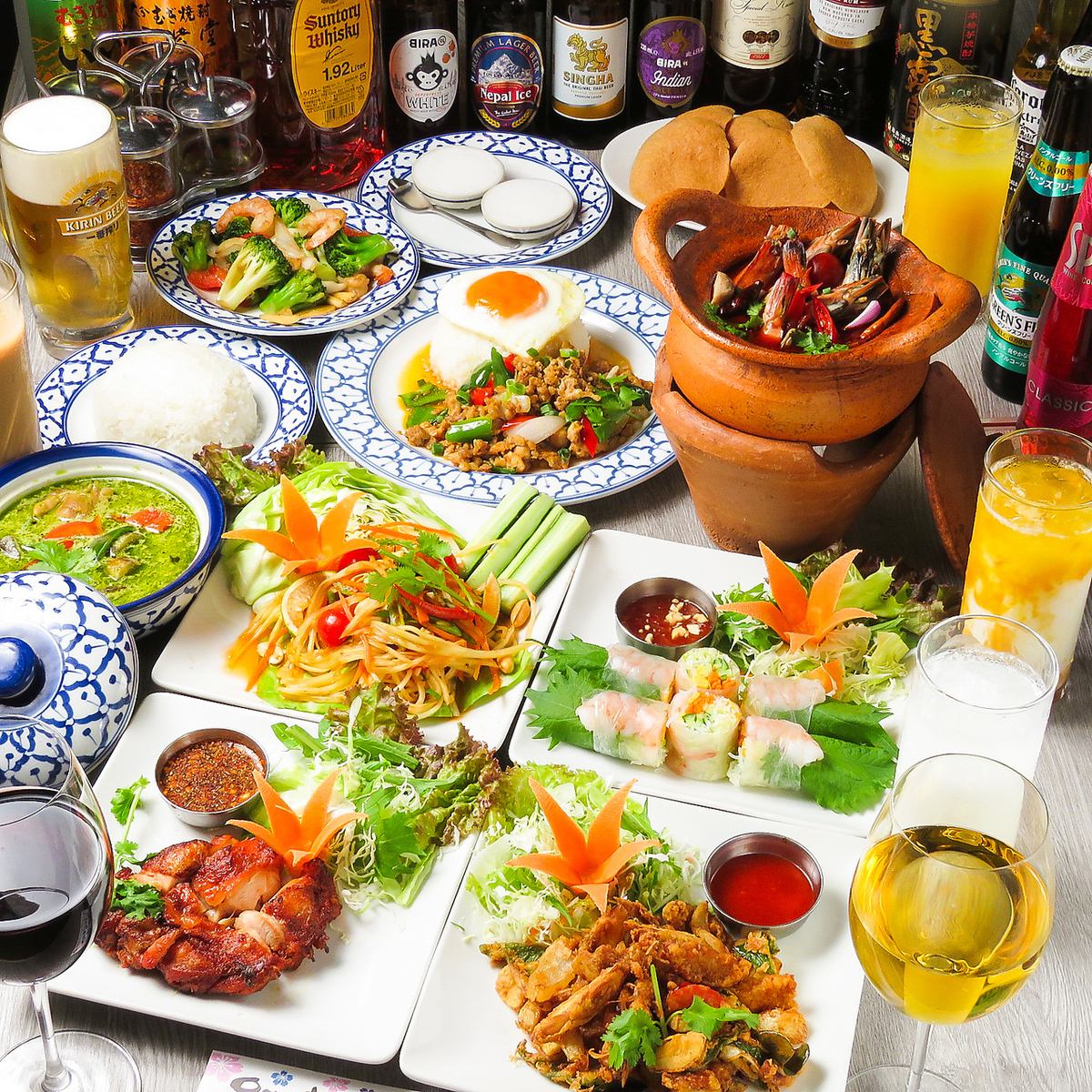 全9品のボリューム満点絆タイスペシャルコースに2時間サイノレギュラードリンク飲み放題付き!ご友人やご家族とのお食事から、女子会、歓送迎会、打ち上げなど幅広いシーンにご利用ください♪
